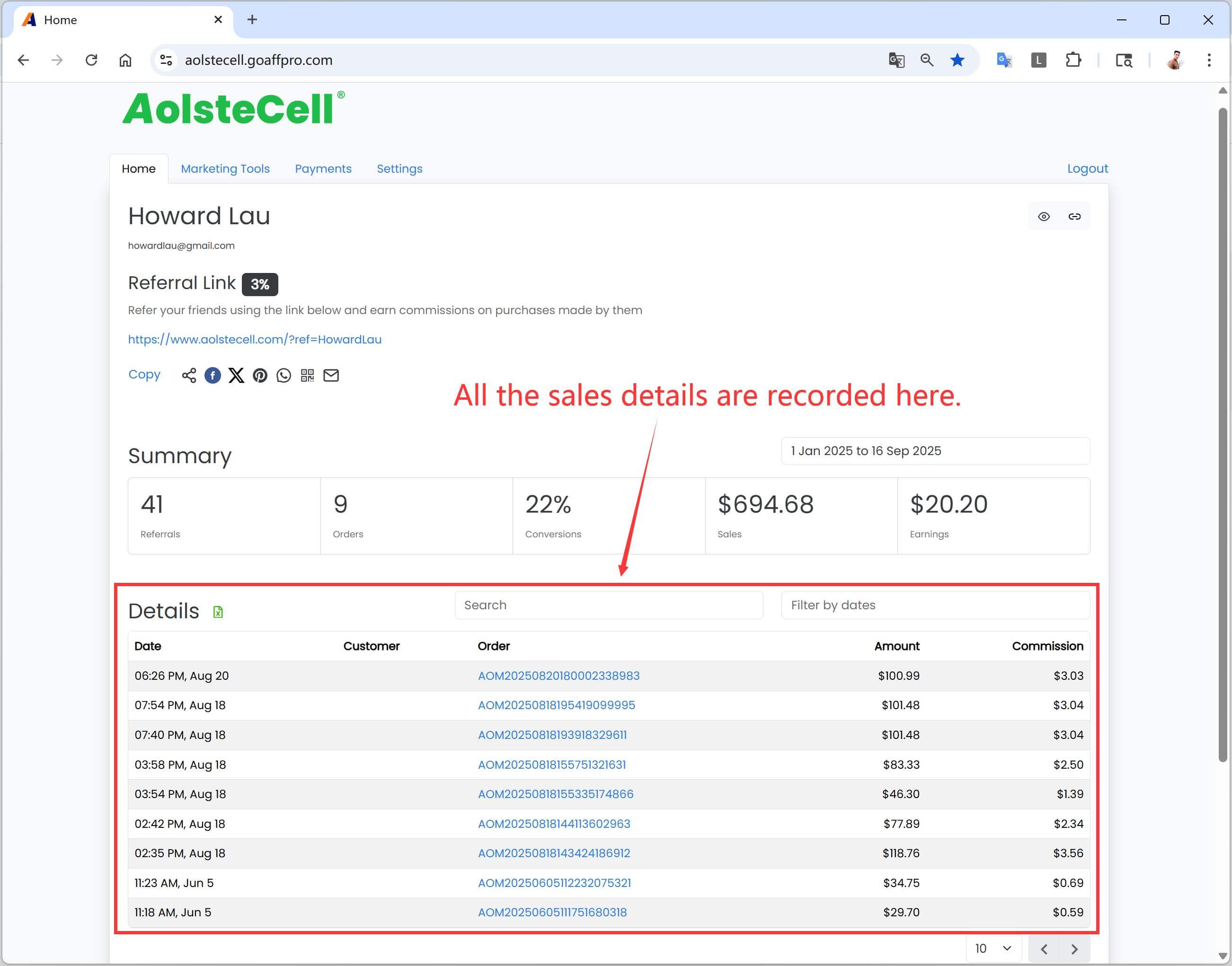 How do I track my clicks, sales, and commissions?