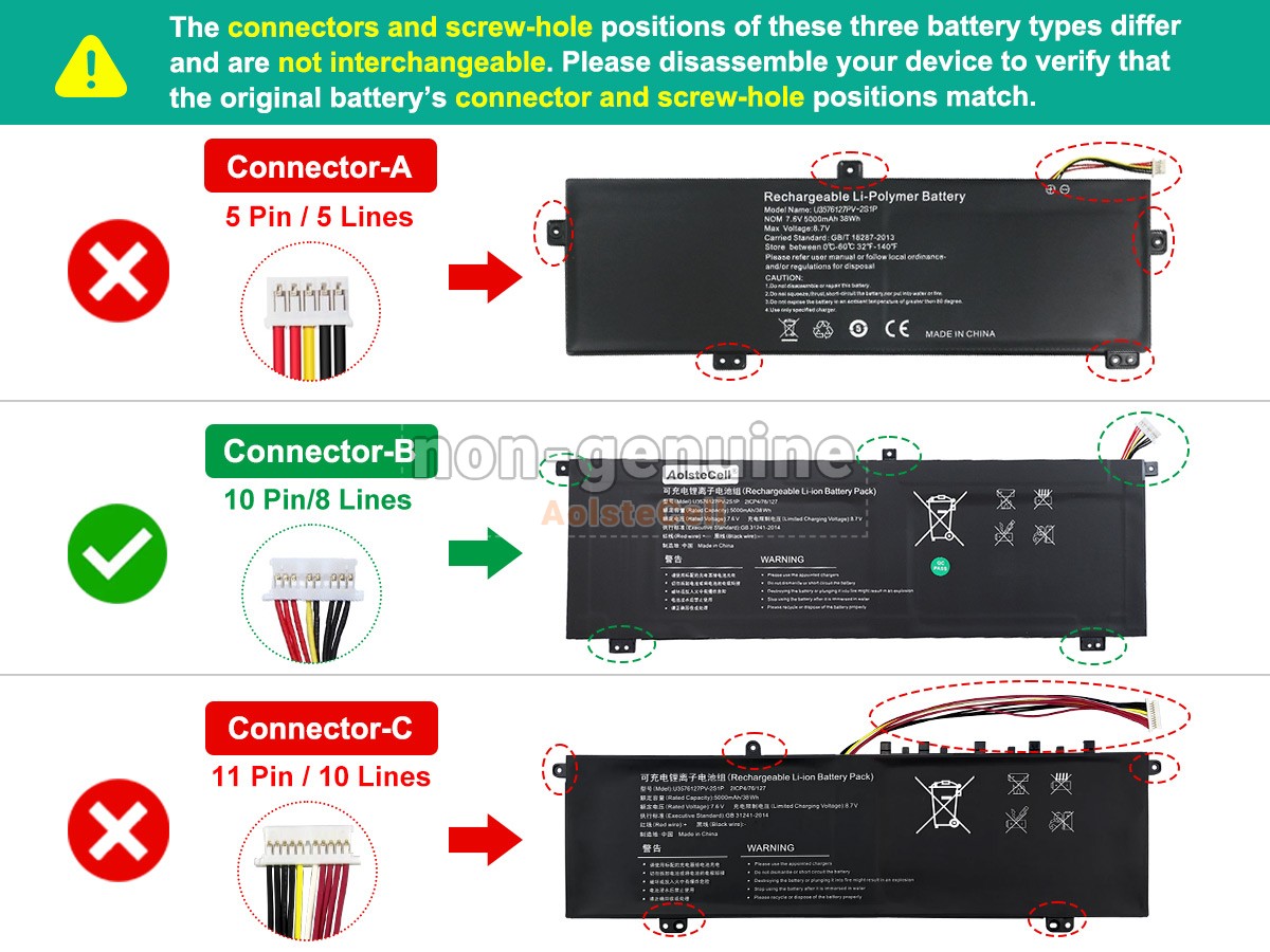 The AolsteCell U3576127PV-2S1P-5K5L battery is compatible with various battery part numbers and device models, not all of which are listed below. Please use the search box below to confirm.