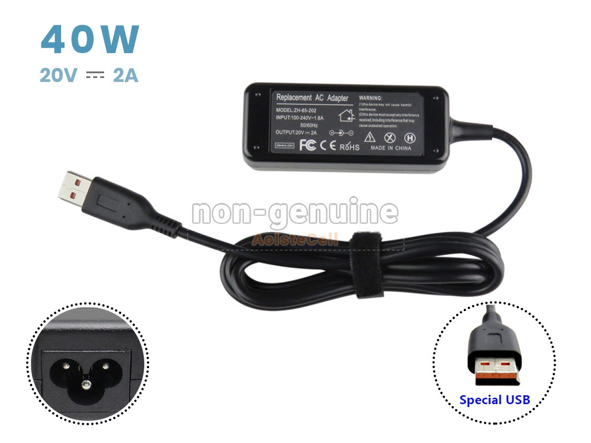 AolsteCell Adapter LE-SPECIAL-USB-US-40W for Lenovo ADL40WDE, ADL40WDD, ADL40WDA, ADL40WCD, ADL40WDC