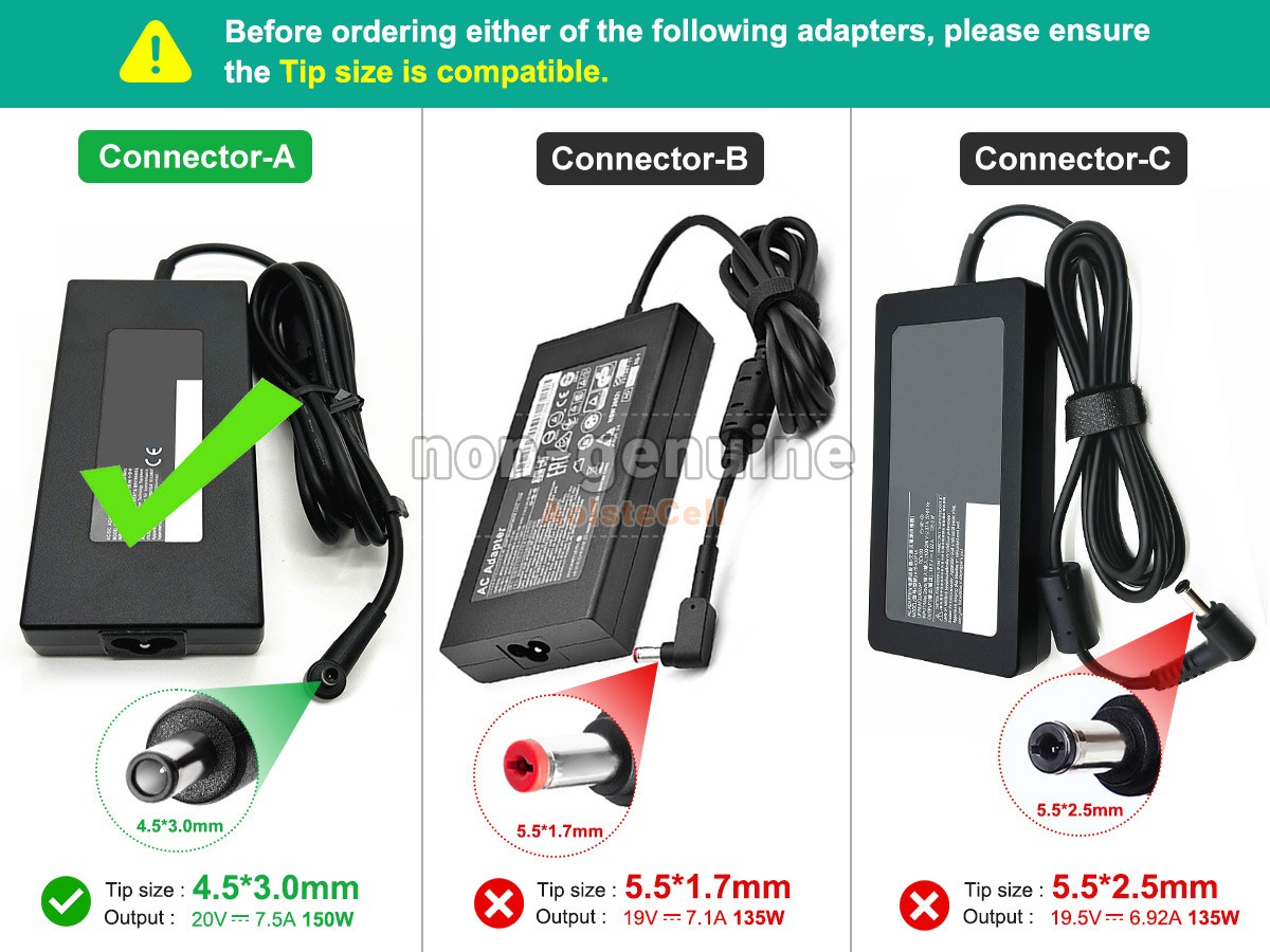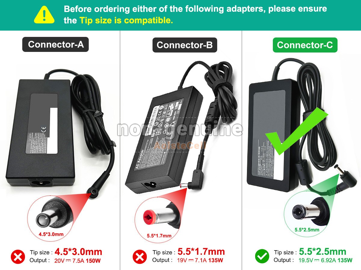 Note :Before placing an order please check your old adapter's connector and output, ensure them are same to our product's.