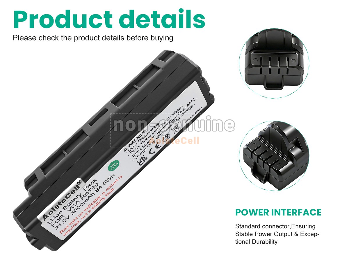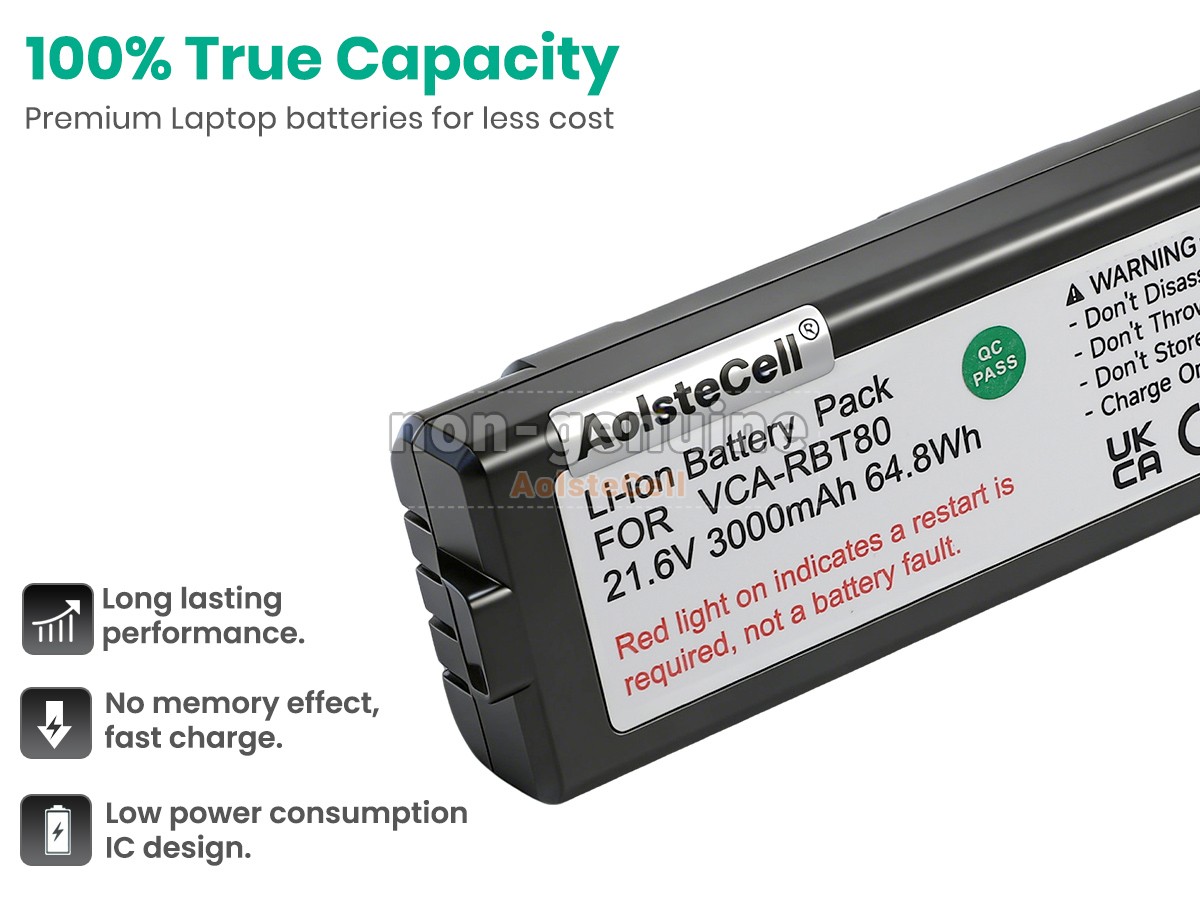 The AolsteCell VCA-RBT80 battery is compatible with various battery part numbers and device models, not all of which are listed below. Please use the search box below to confirm.